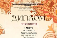 Поздравляем Леонтьеву Алису, ставшую победителем Республиканского конкурса татарского народного искусства и фольклорных традиций "Сияние наследия" (учитель Сахабиева Аниса Рафхатовна).
