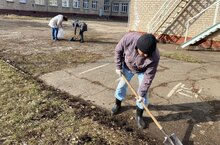 В дни весенних каникул педагоги школы приводят школьный двор в порядок.