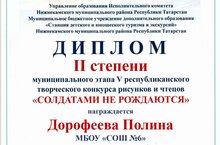 Поздравляем победителей и участников муниципального этапа Республиканского конкурса рисунков и чтецов "Солдатами не рождаются" - Вершинину Виолетту, Дорофееву Полину, Епишева Ариана, Есипову Дарью, Абдурахманову Алсу, Андриевскую Веронику, Ахунову Радэлю.
