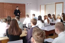 В целях профессиональной ориентации перед старшеклассниками нашей школы вступил представитель отдела кадров МВД г. Нижнекамска. Цель беседы - рассказать выпускникам о возможности получения высшего юридического образования на бюджетной основе.