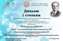 Дипломом первой степени Республиканской научно-практической конференции имени М Н.Морякова награждена ученица 9Б класса школы №6 Шамсиева Алсу (учителя Зиганшина Венера Гависовна, Шайдуллина Танзиля Рахимулловна).