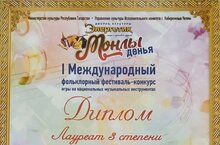 Дипломом лауреата третьей степени награждён наш ансамбль кураистов "Йолдызлар" (ДТДиМ им И Х Садыкова, школа №6, педагог Латыйпова Э.Р., классный руководитель Миргасимова Г.Ф.).