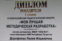 Поздравляем учителя математики школы №6 Дорофееву Лилию Ильиничну - победителя Всероссийского педагогического конкурса "Моя лучшая методическая разработка".