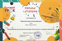Поздравляем победителей Международной дистанционной олимпиады "Лучший урок" по предмету "Математика". Диплом первой степени завоевала Равилова Амиля, сертификаты участников - Иванов Даниил и Ахунова Радэля (учитель Миннегалиева Раиля Хамитовна).