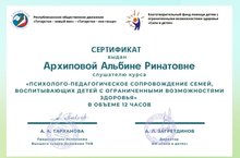 Логопед-дефектолог школы №6 Михайлова Ольга Владимировна, психолог Архипова Альбина Ринатовна приняли участие в качестве слушателей курсов по теме "Психолого-педагогическое сопровождение семей, воспитывающих детей с ОВЗ".
