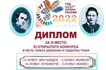 Диплом победителя 3 степени открытого конкурса в честь Тараса Шевченко и Габдуллы Тукая получила обучающаяся 6В класса Лойченко Екатерина (учитель Сахабиева Аниса Рафкатовна, Глухарева Ирина Сергеевна), диплом лауреата конкурса - обучающаяся 7А класса Иванова Екатерина (учитель Зиганшина Венера Гависовна), сертификат участника - Тиллоева Лайло (учитель Сахабиева Аниса Рафкатовна).