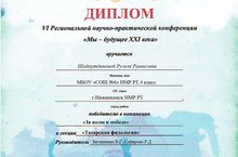 Поздравляем Шайхутдинову Рузилю, получившую диплом в номинации "За волю к Победе" VI Региональной научно-практической конференции "Мы будущее XXI века" (учителя Зиганшина Венера Гависовна, Сабирова Ралена Даимовна).