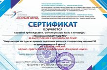 Учитель русского языка и литературы школы №6 Сергеева Ирина Юрьевна выступила с докладом на Всероссийской научно-практической конференции "На крыле науки". Доклад опубликован в сборнике методической продукции конференции.