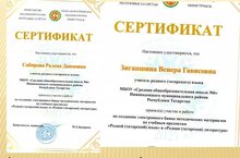 Учителя родного языка школы 6 Зиганшина Венера Гависовна и Сабирова Ралена Даимовна приняли активное участие по созданию электронного банка методического материала по предмету "Родной язык" . Учитель получила сертификат министерства образования и науки Республики Татарстан.