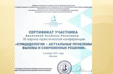 В рамках месячника по профилактике правонарушений психолог школы 6 Архипова Альбина Ринатовна приняла участие в работе Всероссийской научно- практической конференции 'Суицидология - актуальные проблемы, вызовы и современные решения"