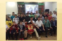 25 мая в центральной библиотеке имени Г.Тукая состоялась встреча учеников 8А,7А класса школы 6 с игроком хоккейного клуба "Авангард", обладателем кубка Гагарина, мастером спорта Дамиром Шарипзяновым. Детей сопровождала учитель физкультуры Крайнова А.А.