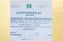 Поздравляем Шамсиеву Алсу, занявшую второе место в международном конкурсе "Литературный мир" в номинации "Исследовательские работы". Руководители Зиганшина Венера Гависовна, Шайдуллина Танзиля Рахимулловна.