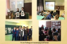 В день разгрома фашистских войск под Сталинградом в нашей школе прошли классные часы и уроки мужества, в 10 классе учителем истории Захаровой Е.В .была проведена викторина по истории Сталинградской битвы.
