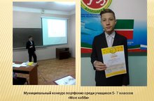 В целях популяризации науки среди широкой аудитории города Нижнекамска совместно с НХТИ ФГБОУ “КНИТУ” был проведен “Фестиваль науки”. В рамках фестиваля был проведен конкурс портфолио среди учащихя 5 – 7 классов “Мое хобби”. На конкурсе достойно выступили и заняли призовые места Глухарев Никита -диплом I степени в номинации «Изобразительное искусство» и Насибуллина Малика – диплом III степени в номинации «Художественное слово». Сертификатом участника отмечен Гурьянов Никита.