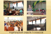 В рамках месячника по профилактике правонарушений, в целях реализациипроекта “Школа ответсвенного родительства” для родителей 7 –х классов была проведена родительская суббота по теме “Проблемное поведение подростка. Уголовная и административная ответственность несовершеннолетних». Перед родителями выступила директор школы Фахрутдинова Н.М., которая раскрыла основные аспекты профилактики правонарушений среди учащихся 7-х классов. Заместитель директора по воспитательной работе Глухарева И.С. рассказала обучающимся и их родителям о возрасте административной и уголовной ответственности, видах наказания, в том числе уголовного. Также были зачитаны для примера письма детей, находящихся в колониях для несовершеннолетних, о том, как они оценивают свой поступок, как понимают и осознают свои ошибки. Социальный педагог Лисюкова Г.В. обсудила с родителями проблемы переходного возраста, дала конкретные советы по налаживанию взаимоотношений между подростками и их родителями.