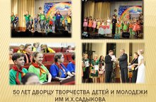 18 ноября 2016 года состоялось торжественное мероприятие «Там, где сбываются мечты…», посвященное 50-летнему юбилею Дворца творчества детей и молодежи имениИ.Х.Садыкова. На праздник были приглашены ветераны педагогического труда, бывшие работники учреждения, директора общеобразовательных школ и учреждений дополнительного образования, педагоги дополнительного образования, родители и обучающиеся Дворца. В торжественном мероприятии приняли участие заместитель Главы Нижнекамского муниципального района Э.Р. Долотказина, начальник управления образования В.Н. Матюшин, председатель Профсоюза работников образования Баринова С.В.