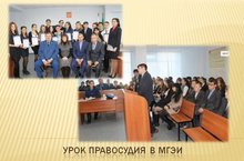 Урок правосудия в МГЭИ 24 ноября для учащихся общеобразовательных организаций в зале судебных заседаний Нижнекамского филиала МГЭУ прошло открытое практическое занятие в форме интерактивной игры «Урок правосудия», которое максимально приближено к реальному судебному разбирательству. Роли адвокатов, федерального судьи, обвиняемых и свидетелей взяли на себя студенты юридического факультета МГЭУ.