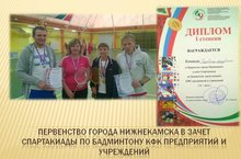 Активное участие приняли наши педагоги в Первенстве города Нижнекамска в зачет Спартакиады по бадминтону среди женщин КФК предприятий и учреждений (II лига), завоевав I место. В составе сборной участвовала наш педагог Крайнова А.А.
