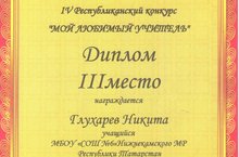 Поздравляем Глухарева Никиту, занявшего III место в IV Республиканском конкурсе «Мой любимый учитель».