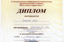 Победа в IV Республиканской конференции исследовательских краеведческих работ учащихся "Жить, помня о корнях своих..."(исследовательские работы) 16.03.2016