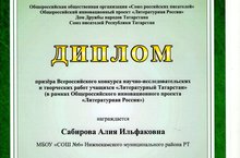 Всероссийский конкурс научно – исследовательских и творческих работ учащихся “Литературный Татарстан” 18.03.2016