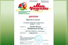 - Диплом высшей степени за лучшую работу - Русскова Рената( учащаяся 5 Б класса) - название работы "В лазурной акварели моря...", детское объединение "Компьютерная графика", педагог Сычева Л.Н.