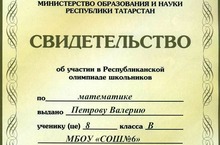 Петров Валерий принимал участие в Республиканской олимпиаде школьников по математике. К олимпиаде они готовились вместе с учителем математики Дорофеевой Л.И.