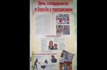 3 сентября 2013г.прошли мероприятия в рамках Дня солидарности в борьбе с терроризмом. Во всех классах был проведен урок "Экстремизму - нет!". Педагоги провели беседы о личной безопасности учащихся, правилах поведения в случае захвата в заложники, правилах поведения в случае обнаружения опасных предметов.Для учащихся среднего звена были проведены классные часы, на которых детям еще раз напомнили об угрозе терроризма, его истоках, последствия. Были показаны мультимедийные презентации о Беслане, взрывах в Москве и других террактах, рассмотрены ситуации противодействия терроризму, правила поведения, азы спасения случае терракта. На первом этаже школы оформлена стенгазета, которой рассказана история возникновения Дня солидарности борьбе с терроризмом, даны конкретные рекомендации в случае террактов, приведены правила действия при обнаружении подозрительных предметов.Представлены фото с мест террористических актов .Также с начала учебного года во всех школах города проводиться операция «Антитеррор», сотрудники УВД, МВД, полиции осуществляют непосредственный контроль за посещаемостью школы, останавливают подозрительных лиц, осматривают припарковавшиеся у школы машины. 2.09.13 в нашей школе была проверка тревожных кнопок и действия персонала при ЧС.