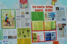 Для профориентации учащихся 9 – 11 классов в школе оформлен стенд, где учащиеся и их родители могут познакомиться с высшими и средними учебными заведениями , выбрать для себя наиболее интересный вариант для последующего поступления.
