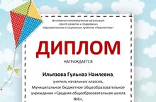 Поздравляем учителя начальных классов, руководителя школьного методического объединения учителей начальных классов, начальника летнего пришкольного лагеря "Непоседы" Ильязову Гульназ Наилевну, занявшую III место во Всероссийском конкурсе лучших практик летних оздоровительных лагерей с дневным пребыванием детей.
