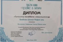 Обучающийся 8А класса Шамиль Бикбаев награждён Дипломом в номинации "Зрительская симпатия" муниципального конкурса "Түбән Кама гүзәле һәм батыры" (учитель музыки Нафикова Гульназ Райхановна).