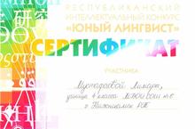 Учащиеся 4 класса Герасимова Виктория, Гусейнова Суссана и Мустафаева Лимара награждены Сертификатами участников Республиканского интеллектуального конкурса "Юный лингвист".