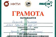 Поздравляем обучающуюся Татнефть-класса Бариеву Самиру (9А), занявшую II место в XXIV Республиканской юношеской научно-исследовательской конференции имени С.С.Молодцова (учитель русского языка и литературы Сергеева Ирина Юрьевна). Свидетельство участника конференции получила обучающаяся 5А класса Муртазина Ляйля (учитель Сахабиева Аниса Рафхатовна).