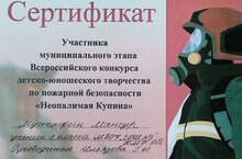 Обучающийся 3А класса Мустафин Мансур принял участие в муниципальном этапе Всероссийского конкурса детско-юношеского творчества по пожарной безопасности "Неопалимая Купина" (учитель Ильязова Гульназ Наилевна).