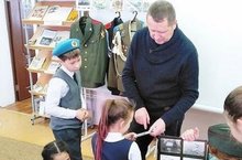 Школьникам хотелось побольше узнать о парашютах и боевой технике, боевых искусствах и ощущениях полета. С огромным любопытством и интересными комментариями рассматривали дембельский альбом. Дети с нетерпением дожидались очереди для фотосессии в военной форме. Для наглядности библиотекари представили формы разных войск, выставили на обзор литературу о вооруженных силах России из серии «Детская энциклопедия РОСМЭН».