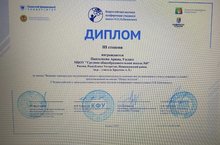 Поздравляем Пантелееву Арину, ученицу 9в класса с почетным 3 местом за научный доклад в представленной секции "Общая экология". Руководитель Брылёва А.Л. Желаем дальнейших успехов в работе!