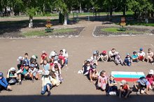 Ребята из пришкольного лагеря провели флеш-моб ко Дню России.