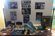 В День космонавтики в школе была организована выставка рисунков и поделок на тему: "Космос".