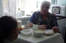 Накануне праздника Великой Победы учащиеся 5в класса посетили на дому ветерана войны Рафикову Альфию Ярулловну. Девочки нашей школы поздравили ее с праздником, помогли по хозяйству, а также вместе выпили чаю с угощениями.