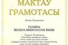 Галина Венера Минсултановна - учитель татарского языка и литературы была награждена Грамотой Министерства образования и науки Республики Татарстан за огромный вклад в образование и воспитание детей.