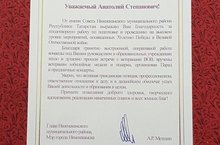 Благодарственное письмо Главы Нижнекамского муниципального района, Мэра города Нижнекамск Айдара Раисовича Метшина за плодотворную работу и проведение на высоком уровне мероприятий, посвященных 70-тилетию Великой Победы.