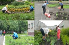 Продолжается работа к приёмке школы к новому учебному году. Отряд школьников не остается в стороне - ребята активно работают на территории школы: убирают мусор, поливают цветы, приводят в порядок грядки с овощами, а также помогают учителям в школе.