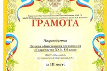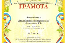 В Муниципальном этапе XVII Международного фестиваля «Детство без границ» Грамотой за II место награждается Детская общественная организация «Содружество XXL» МБОУ «СОШ №8» 8 "г" класса (руководитель: Пантелеева Т.Н.) в фотоконкурсе «Детская организация в делах и лицах»