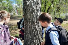 28 апрель көнне 2Б сыйныф укучылары “ЭКОВЕСНА” экология икеайлыгы кысаларында “Ак каен” экология акциясендә катнаштылар. Балалар белән әңгәмә үткәрелде, аннары ишегалдына чыктылар һәм балалар агачларны "дәваладылар" - аларның сылау җәрәхәте, каен суы ага, пластилин. -
