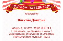 Учащийся 1А класса Никитин Дима плодотворно отдыхает на весенних каникулах. Его успехи в Международных блицтурнирах по русскому языку и математике радуют нас ! Дима, мы гордимся тобой !