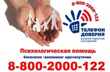 С 2010 года Фонд поддержки детей, находящихся в трудной жизненной ситуации, и органы исполнительной власти субъектов Российской Федерации реализуют Всероссийский проект «Детский телефон доверия 8-800-2000-122», обеспечивающий предоставление экстренной психологической помощи по телефону детям и родителям.