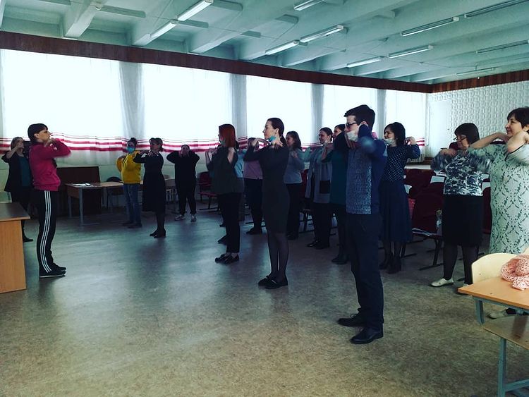 Учителя нашей школы начали свой рабочий день с утренней зажигательной зарядки в честь Всемирного дня здоровья. -
