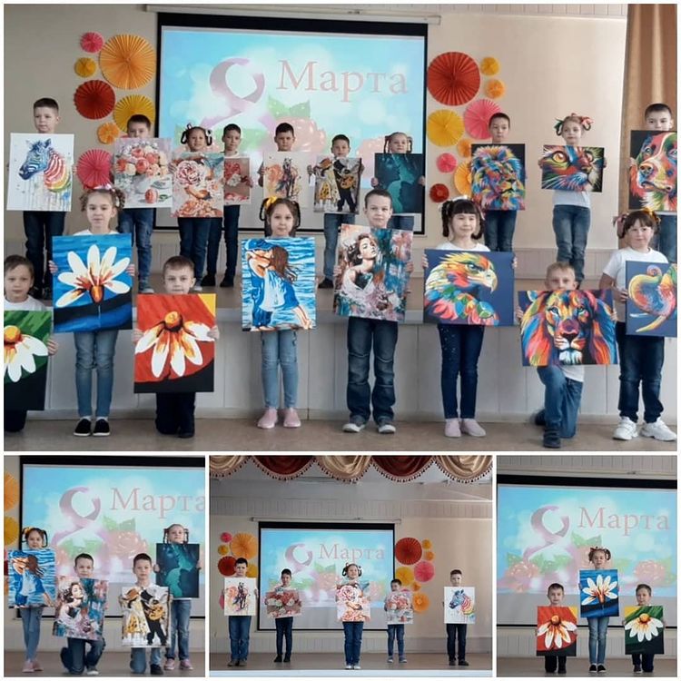 Накануне весеннего праздника 8 Марта учитель биологии Лейсан Дамировна вместе с учениками начальной школы продемонстрировала персональную выставку картин. Изумительные цвета, содержательные и такие весенние. Прекрасный подарок для всех учителей! -