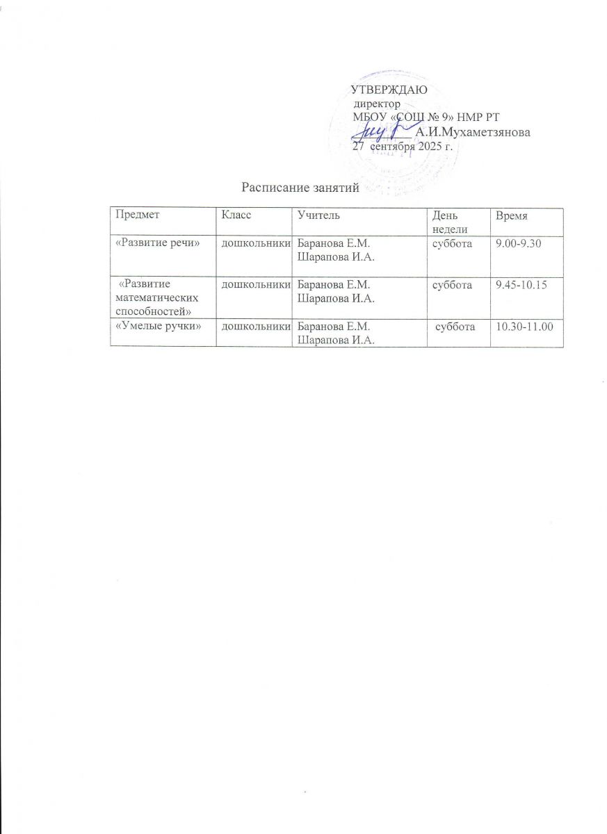 Расписание платных образовательных услуг на 2025-2026 учебный год