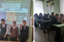 С целью вовлечения подрастающего поколения в природоохранную деятельность, с учащимися 8-х классов был проведен экологический урок «Разделяй с нами. Мир без мусора». Во время экоурока, учащиеся обсуждали проблему утилизации бытовых отходов, им были продемонстрированы: презентация «Утилизация мусора», видеоролик-мультфильм «Как мусор уничтожил мир» и видеоролик «Переработка отходов».